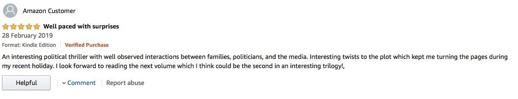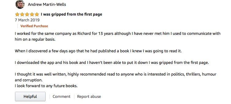 Richard Wade deftly gives us byte sized insights into each one and plays one against another on a stage of which he is in total control. One of the delights of this book is how he enables the reader to get inside the head of each character and admire or dislike each one. He has a knack of building up tension right up till the end, the night of the election. He is able to keep us guessing as to what happens next all the way through.